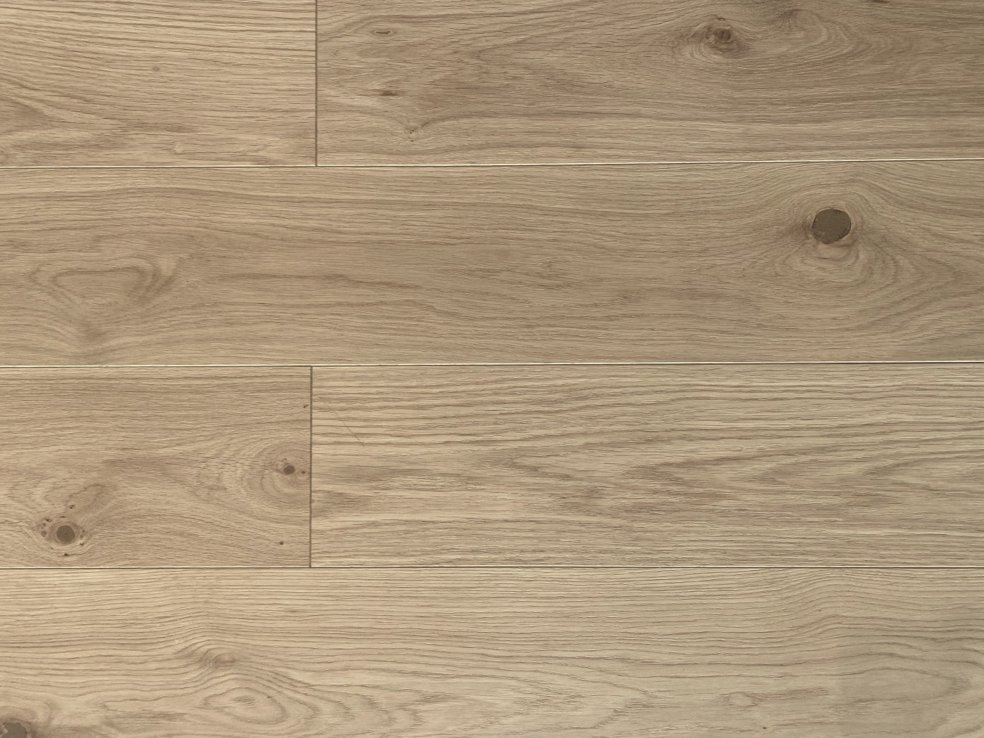 Légèrement texturée, des noeuds visibles mais un rebouchage discret, et une surface mate graçe au vernis.
